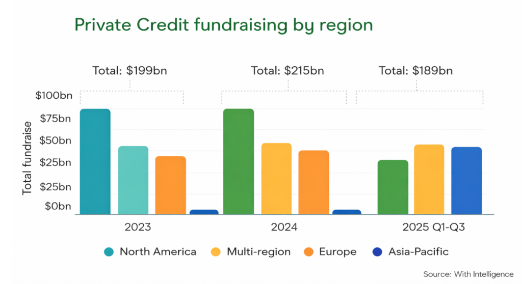 While risks are rising, the private credit market is simultaneously undergoing profound structural transformations that are reshaping its role within the global financial system. One of the most significant developments is geographic diversification. As the US direct lending market becomes increasingly competitive and compressed, institutional investors are reallocating toward Europe, where fragmented market structures and informational inefficiencies create opportunities for higher risk-adjusted returns.