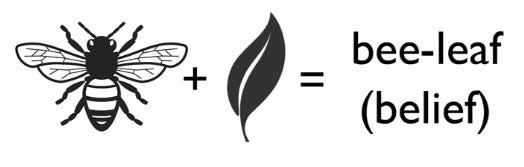 A picture of a bee followed by a picture of a leaf would be pronounced “bee-leaf,” a homophone of the word “belief.” Thus, the bee and the leaf symbols, together, represent the totally unrelated concept “belief.”