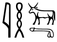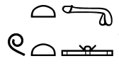 This word consists of five signs: three sound-signs and two determinatives. The first three signs are the coiled rope, pronounced w, followed by two loaf-of-bread signs, pronounced t. Thus, the word is transliterated as wtt and pronounced something like “wetet.”