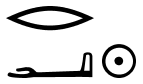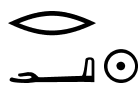 It consists of two alphabetic signs, the mouth hieroglyph, pronounced r, and the arm hieroglyph a, pronounced something like the Arabic ayin. The word ra is followed by this circular determinative, which indicates the meaning of the word ra.