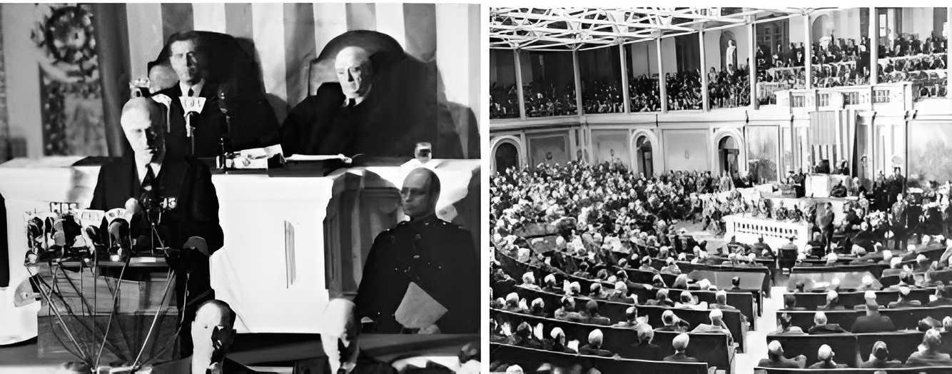 – US President Franklin Delano Roosevelt addressing Congress on December 8, 1941
