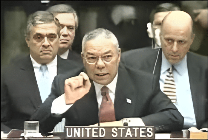 February 5, 2003, US Secretary of State Colin Powell address to UN Security Council.